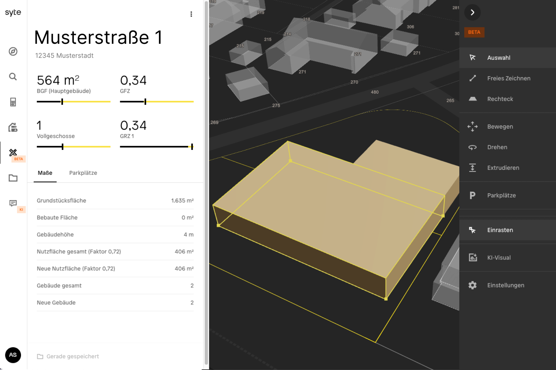 Mit der Veröffentlichung von syte Draft erweitern wir syte um einen entscheidenden Schritt. Wir bringen Potenzial- und Wirtschaftlichkeitsanalyse und den ersten räumlichen Entwurf in einen durchgängigen Workflow. Das markiert eine neue Phase der digitalen und effizienten Projektplanung.