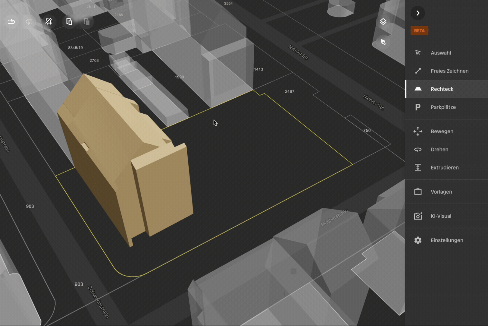 Mit syte Draft erstellen Nutzer in der frühen Projektphase 3D Entwürfe direkt auf realen Grundstücken. Mit dem aktuellen Product Update erweitern wir syte Draft an den Stellen, die in der Praxis am häufigsten gebraucht werden. Sie können Abstandsregeln sichtbar machen, Staffelgeschosse modellieren, schneller mit Vorlagen und Duplikaten arbeiten und Ihre KI-Visualisierungen individueller steuern und abspeichern. Gleichzeitig sorgt die neue Quickbar für eine aufgeräumtere Oberfläche und kürzere Klickwege bei der Nutzung.